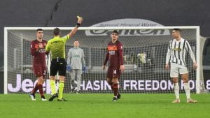 شهدت قمة يوفنتوس وضيفه روما التي جمعتهما مساء اليوم السبت، ضمن الجولة 21 للدوري الإيطالي لكرة القدم، لقطة طريفة بين حكم الساحة دانييلي أورساتو والنجم البرتغالي كريستيانو رونالدو.