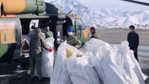 بينما نشرت وزارة الدفاع التركية عبر حسابها في “تويتر”، اليوم السبت، مقطع فيديو يوثق لحظة قيام عناصر من الجيش التركي بإلقاء العلف للماعز، عبر مروحيات فوق جبل “سنبل”.