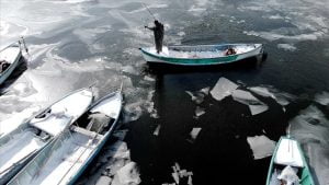 وقال جلال الدين أردوغان، أحد الصيادين، إنه يتعين عليهم الإبحار إلى البحيرة على الرغم من برودة الطقس.