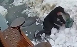 سجلت كاميرات المراقبة وسط العاصمة الأوكرانية كييف لحظة سقوط قطعة جليد كبيرة من سقف أحد المباني على رأس امرأة.