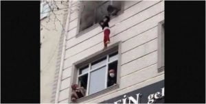 لم تجد أم تركية طريقة لإنقاذ أبنائها الأربعة إلا برميهم من شرفة منزلها الواقع بالطابق الثالث، حيث أظهر مقطع فيديو تداوله رواد مواقع التواصل الاجتماعي، تجمهر الناس تحت منزل السيدة، بعدما سمعوا صرخاتها وهي تبكي وتستنجد، في الوقت الذي كانت سحابة دخان كثيف تخرج من بيتها.