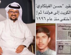 كشف مواطن كويتي يدعي جاسم محمد، وهو ابن شقيق المفقود حسن الفيلكاوي، المفقود منذ أكثر من عقدين بظروف غامضة،في تسجيل صوتي قصة أغرب من الخيال بشأن العثور على عمه حسن الذي انقطعت أخباره منذ عام 1996 بعد مغادرته الكويت متجهاً إلى أمريكا.