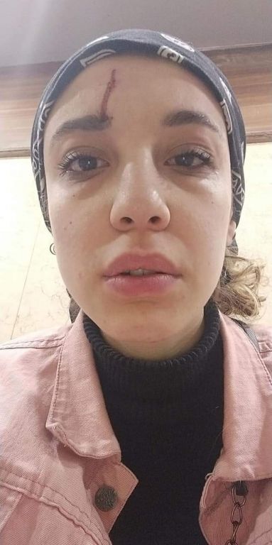 ونشرت آية صورا تظهر تعرضها للضرب في مناطق متفرقة من جسدها، وجرحا في رأسها كما بدت آثار الشجار على بنطالها.