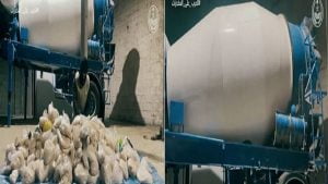 وأوضح الفيديو أن كمية المخدرات كانت مخبأة بإحترافية داخل شاحنة نقل خرسانة جاهزة ، وتم القبض على مستقبليها وهما مقيمان من الجنسيتين الأردنية والسودانية وإحالتهما للنيابة العامة .