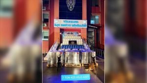 كما نشر صويلو صورة للمواد المصادرة أمام مديرية أمن منطقة “يوكسك أوفا”، يظهر فيها أيضا كلبان بوليسيان شاركا في العملية الأمنية.