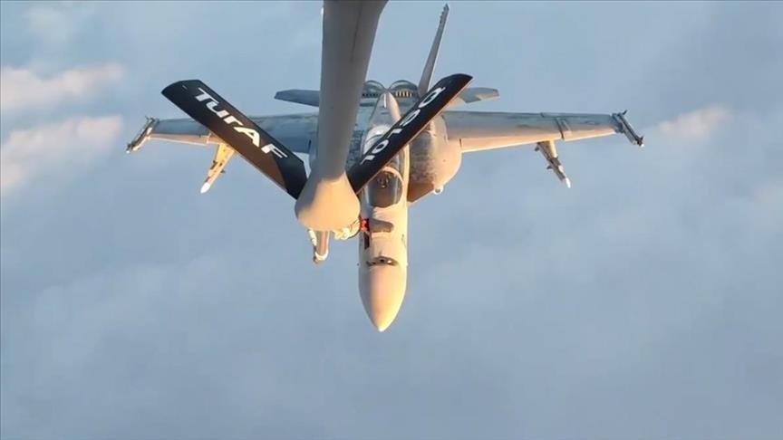زود سلاح الجوي التركي، 4 طائرات حربية أمريكية من طراز “إف – 18” بالوقود، في الأجواء الدولية.