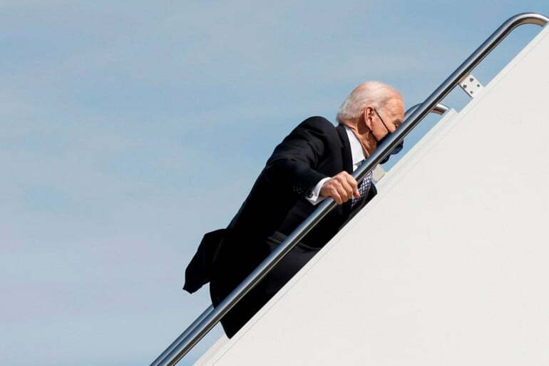 وكان قد انتشر في مواقع التواصل الاجتماعي مقطع فيديو لبايدن وهو يتعثر ساقطا ثلاث مرات في أثناء صعوده سلم الطائرة.