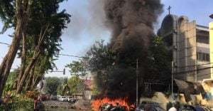 وكانت الشرطة الإندونيسية قالت أمس إنّ انتحاريين فجرا نفسهما لدى محاولتهما دخول الكنيسة صباح الأحد خلال قداس.