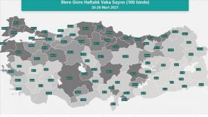 أعلنت وزارة الصحة التركية عن أحدث معدلات الإصابة الأسبوعية بفيروس كورونا في 81 ولاية بتركيا بين يومي 20 و26 مارس.