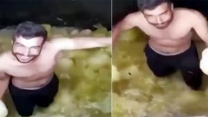 تداول رواد موقع التواصل الاجتماعي تويتر، فيديو صادمًا لمواطن تركي يرقص داخل خزان مخللات.