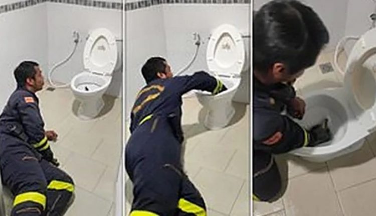 حاول “سومشاي” سكب المنظف على الثعبان لإخافته، لكنه سرعان ما فر واتصل بخدمات الطوارئ عندما رفض الثعبان الذي يبلغ طوله 8 أقدام (نحو 243 سم) الهروب من المرحاض.