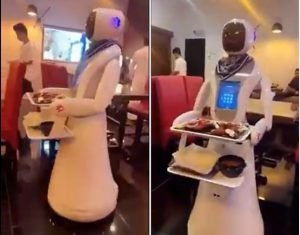 كما وأظهر الفيديو المتداول الروبوتات وهم يقومون بتقديم الطلبات للزبائن بناءا على أرقام الطاولة.
