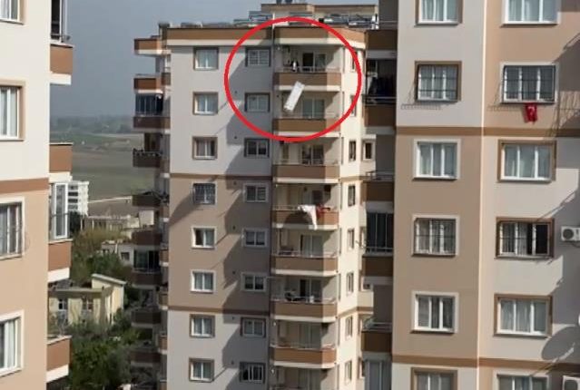 أصيب رجل تركي يبلغ من العمر 55 عامًا بنوبة عصبية ألقى على أثرها أغراض منزله من الشرفة .