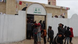 وقال مسؤول العلاقات المؤسسية في فرع هيئة الإغاثة بإسطنبول، فتح الله بادم، تم بناء المسجد على أرض تبرعت بها جمعية الإحسان والوفاء في المنطقة التي تم بناء بيوت من الطوب فيها العام المنصرم لصالح النازحين، بالتعاون مع الجمعية السورية.