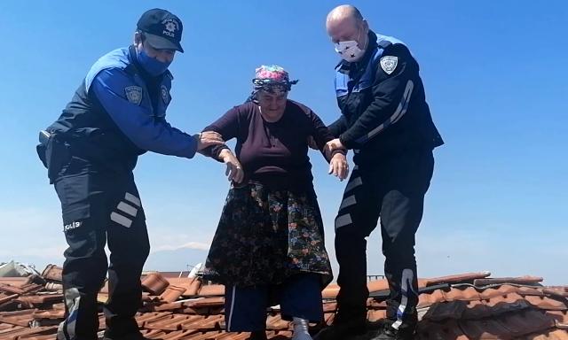 أرعبت عجوز تركية سكان حيها ورجال الشرطة بصعودها إلى أعلى سطح منزلها .