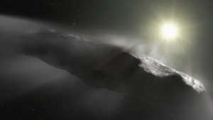 وبين هذين الطرفين يكمن أول جسم بينجمي يمر عبر النظام الشمسي. ويعتقد العلماء أن “أومواموا” .الذي يبلغ عرضه 400 متر، والذي مرّ بالقرب من الأرض في عام 2017، وكان مذنبا تم قذفه في اتجاهنا من نظام نجمي بعيد.
