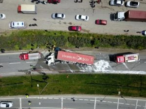 وأضافت الوسائل، أن الحادث وقع نتجية انقلاب شاجنة فوق سيارة صغيرة، وأسفر الحادث عن تحطم السيارة الصغيرة ووفاة سائقها وإصابة سائق الشاحنة عقوب إيشيك (38) ومساعده صادق كارا حسن (57 عامًا) بجروح مختلفة نقلوا على إثرها مستشفى أورهان غازي الحكومي.