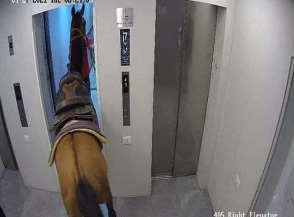 ووفق متابعة “تركيا الآن”، رصدت كاميرا مراقبة أحد المباني شخصًا اصطحب معه حصانه داخل المصعد بعد دخوله المبنى.