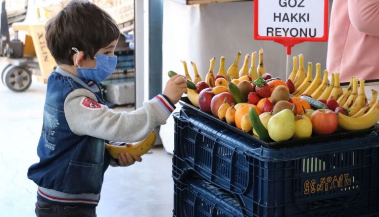 في محافظة أفيون، أطلقت سلسلة متاجر كبيرة مؤخرًا كشك “حق العين” للأطفال. يتميز الكشك البارز بعلامة تقدم فواكه مجانية.