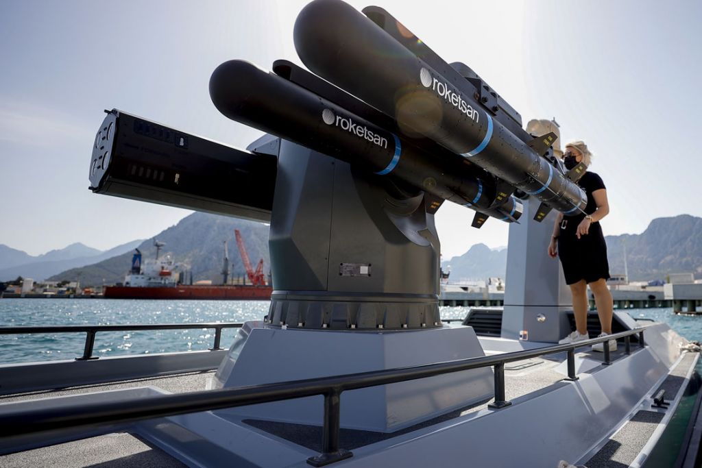 كما تم تجهيز السفينة التركية المسلحة بصاروخ طويل المدى مضاد للدبابات من صنع شركة روكيتسان التركية لصناعة الصواريخ.