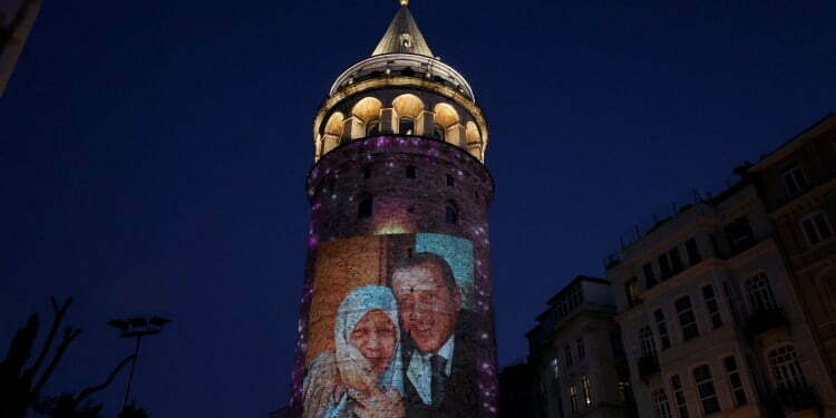 صور والدة الرئيس اردوغان على برج جالاتا 3
