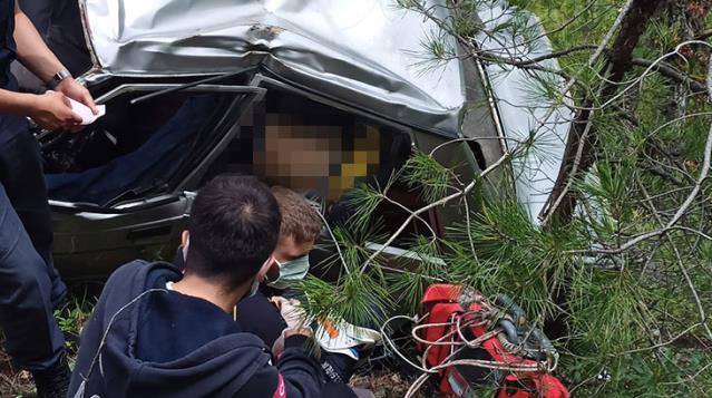 سقط شاب بسيارته بطريقة مروعة في جرف يبلغ عمقه 80 متراً في مدينة سينوب شمال تركيا .
