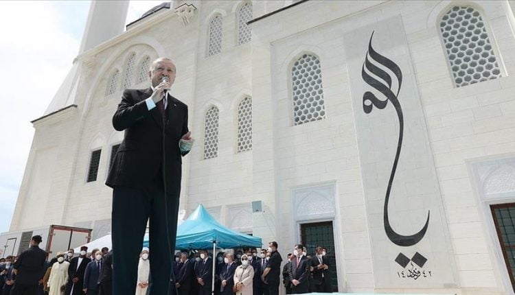 وفي كلمة خلال مراسم افتتاح المسجد، قال أردوغان، إن كافة التنظيمات الإرهابية انطلاقا من “غولن” إلى “بي كا كا”. التي يستخدمها أعداء تركيا، هاجمت المساجد أولا واستهدفت دين الأمة وعقيدتها.