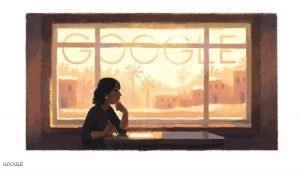 ونشر “غوغل” على واجهة الصفحة الرئيسية له في المنطقة العربية رسما للكاتبة المصرية الراحلة وهي تحمل القلم.
