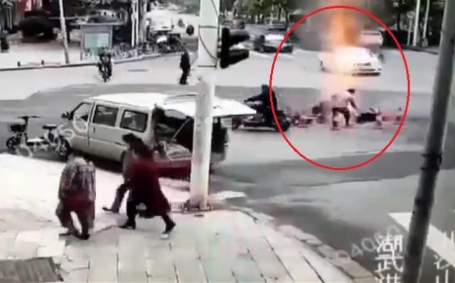 وظهر في الفيديو الذي وثقته الكاميرات، لحظة انفجار الأرض من تحت المارة بسبب خطأ فني في الصيانة داخل أحد فتحات المجاري في ووهان.