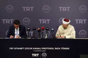 وقع رئيس الشؤون الدينية التركي، البروفيسور علي أرباش، اليوم الإثنين، برتوكولاً مع مدير عام شبكة قنوات “تي آر تي -TRT” التركية، إبراهيم إيرين، من أجل تأسيس قناة دينية خاصة بالأطفال.