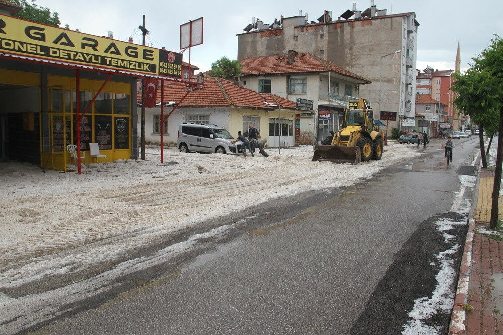 شهدت منطقة “بي شهر” بمدينة قونية وسط تركيا، مساء الجمعة، هطولًا غزيرًا للأمطار بعز الصيف مصحوبًا بزخات من البرد.