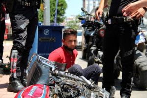 اعتقلت الشرطة التركية طفل يبلغ من العمر 13 عامًا يقود دراجة نارية سرقها في أنطاليا جنوب غرب تركيا .