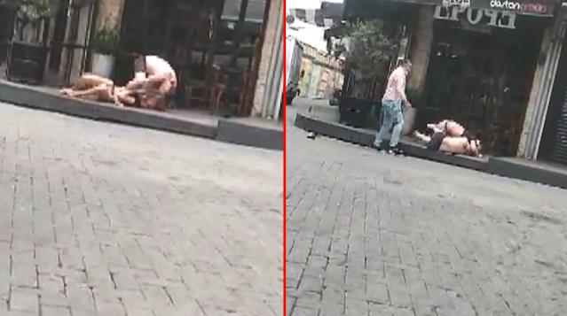 وقع شجار بين مجموعة من السياح لايرتدون ملابس كاملة “عراة” وسط الشارع في بيشكتاش بمدينة إسطنبول غرب تركيا .
