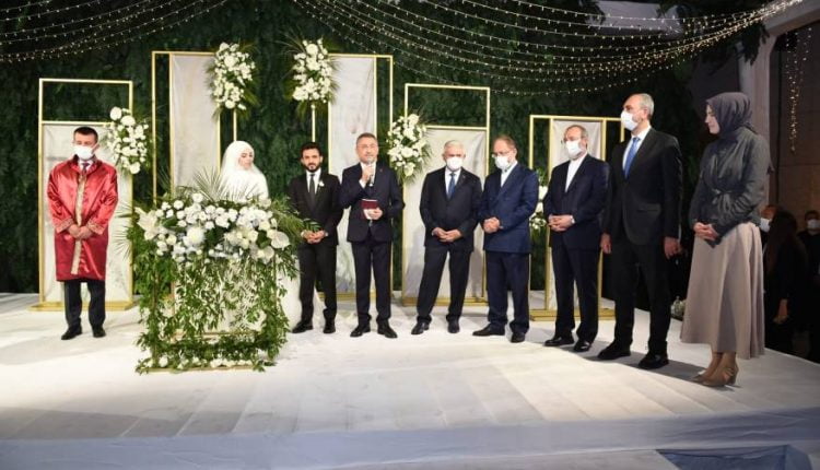 وقال نائب الرئيس أردوغان فؤاد أوقطاي ناقلًا رسالة الرئيس أردوغان للعروسين “رسالة العم طيب إن على الأزواج إنجاب 3 أطفال على الأقل”.