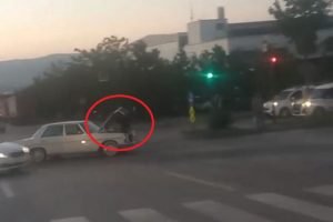 وأضافت أن المارة تفاجئوا عندما رأوا الشخص يحاول إصلاح العطل في المحرك والسيارة تسير.