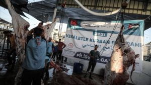 وقال أشرف إسماعيل مدير التعاون الدولي بوزارة الأوقاف في غزة :.”شرعنا بذبح أضاحي (لم يحدد عددها) بدعم من وقف الديانة التركي لتوزيعها على 30 ألف أسرة فقيرة بالقطاع”.