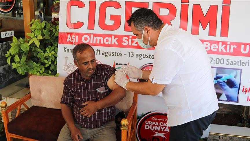 يقدم مطعم في ولاية شانلي أورفة جنوبي تركيا، للمواطنين وجبة كباب الكبد بشكل مجاني مقابل تلقي لقاحا مضادا لفيروس كورونا.