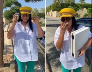 وتظهر الفنانة المصرية منى زكي فى الفيديو المتداول وهى تحاول تسجيل إعلان للحلقة، لدعوة جمهورها لمشاهدة الحلقة. إلا أنها فشلت فى قول الكلام بالترتيب المناسب، وقالت :”استنونى مع صاحبة إسعاد فى..”.