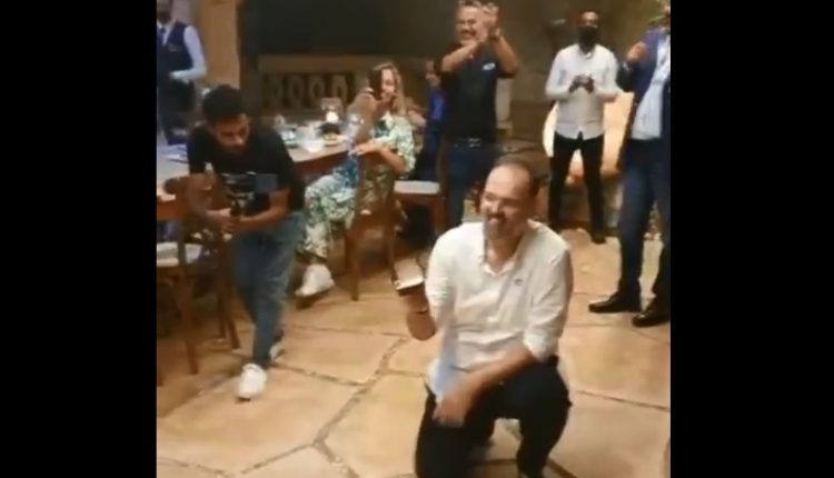 نشر محمد محمود عبد العزيز مقطع فيديو ظهر فيه وهو جالس على ركبته وقدم خاتم الزواج لخطيبته سارة على أنغام أغنية ” مون شيري”