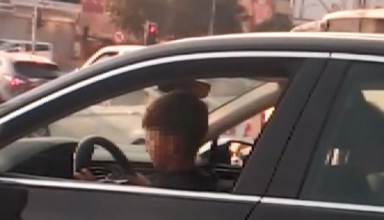 ظهر في الفيديو صبي عمره بين 9 سنوات يقود سيارة تحمل لوحة 34 BHK 101 وبجانبه والده في شارع باغجلار غونشلي .