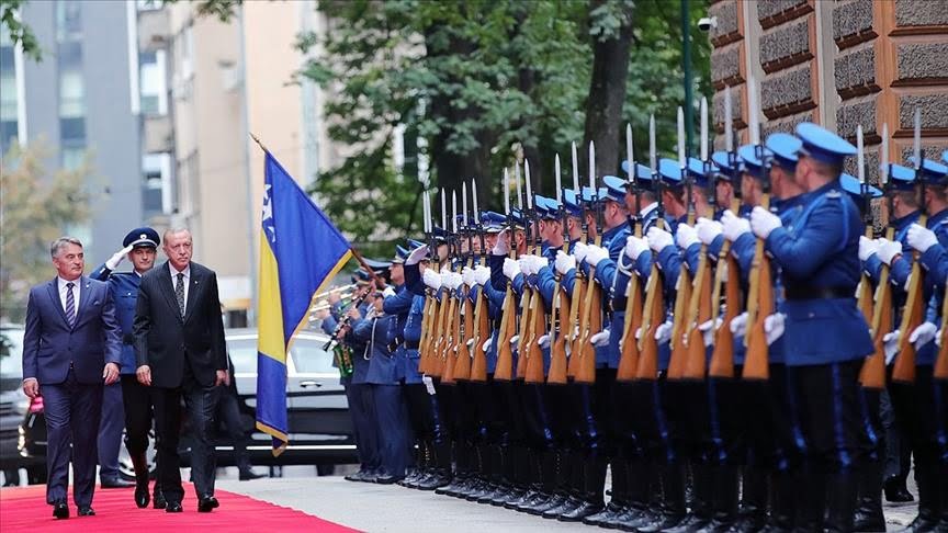 استقبل رئيس المجلس الرئاسي للبوسنة والهرسك زيليكو كومشيتش، الرئيس التركي رجب طيب أردوغان، بمراسم رسمية.