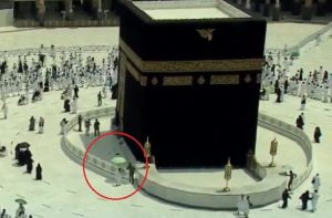 كما وأظهرالمقطع، توجه أحد المعتمرين، نحو رجل الأمن كان في محل خدمته. وطلب منه الحصول على مظلته، اثناء الطواف في صحن المطاف بالحرم المكي.
