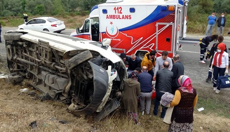 أصيب 13 شخصًا في حادث اصطدام حافلة نقل عمال وشاحنة على طريق بولو السريع في مدينة بولو شمال غرب تركيا .