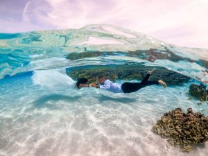 والتقاط الثنائي صور ساحرة بملابس الزفاف تحت أعماق الماء وصرحت العروس قائلة “لطالما أردت شيئًا كهذا.. كان مجرد حلم، لكن حالفنا الحظ.. كان الأمر بسيطًا للغاية، يتعلق بنا فقط”.