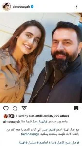 وبشراكتها مع نجم العمل تيم حسن، وعلقت قائلةً: “والتصوير مستمر.. الهيبة جبل قريباً.. مع جبل الهيبة النجم تيم حسن”.