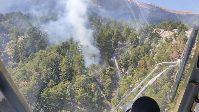 وأضافت أن فرق الإطفاء حضرت إلى مكان الحريق وبدأت بإخماده بواسطة مروحيتين وخمسة مرشات أرضية .