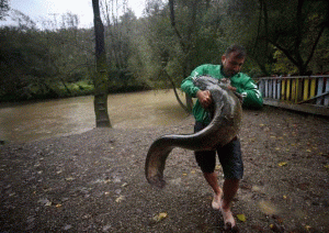 و”السلور” العملاق من أكبر أنواع الأسماك التي تعيش في المياه العذبة بالعالم، وقد يصل طول الواحدة 3 أمتار ووزنها 300 كيلوغرام.