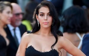 وظهرت جورجينا رودريغز في الصور لا ترتدي مايوه لكنها إختارت فستان أبرز مفاتنها وتحمل حذاءها بيدها، وتضع عقداً باهظ الثمن من الألماس .