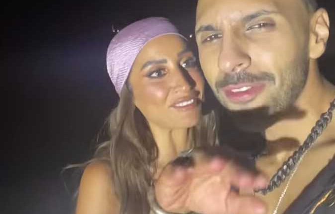 وظهر حسن أبو الروس ودينا الشربيني في الفيديو يغنيان ويرقصان سويا ويتمايلان أثناء تواجدهم بأحد الأماكن في الجونة .