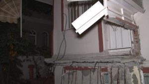 انهارت شرفة شقة من مبنى سكني مكون من 4 طوابق في منطقة أفجيلار بمدينة إسطنبول شمال غرب تركيا .